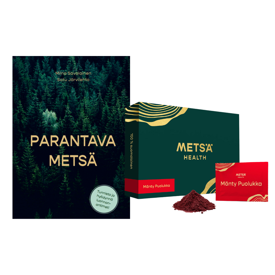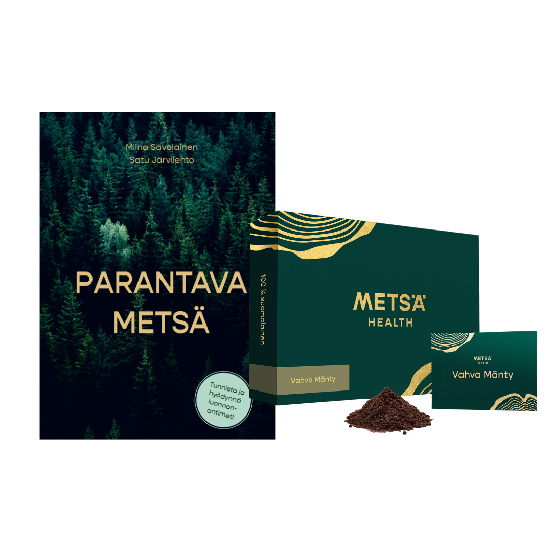 Pohjolan ikiaikaisten metsien vihreä kulta auttaa ylläpitämään ja korjaamaan elinvoimaasi. Metsä -ravintolisät palauttavat yhteytesi luonnon alkuperäiseen parantavaan voimaan. Koe metsän raikas henkäys jokaisella kulauksella! Metsä -havupuujuomien jokainen ainesosa auttaa optimoimaan hyvinvointiasi. Ne on valmistettu ja pakattu Suomessa vain parhaista, tarkoin valituista suomalaisista raaka-aineista täysin ilman lisäaineita.