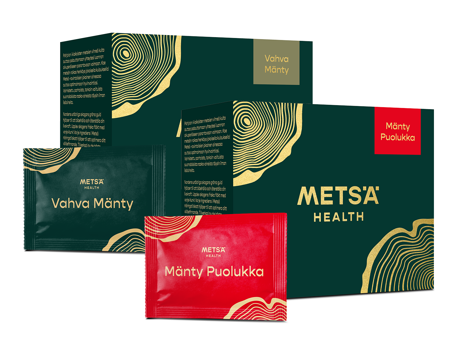 Metsä -havupuujuomissa yhdistämme suomalaisen metsäluonnon terveyttä edistävät antimet kokonaisvaltaisen terveyden ja hyvinvoinnin tukemiseen. Havupuujuomissamme on pohjana männynkuoriuute, josta valmistimme markkinoiden vahvimman havupuujuoman ja lisäksi yhdistimme sen synergisesti joko puolukkaan, mustikkaan tai pakurikääpään.